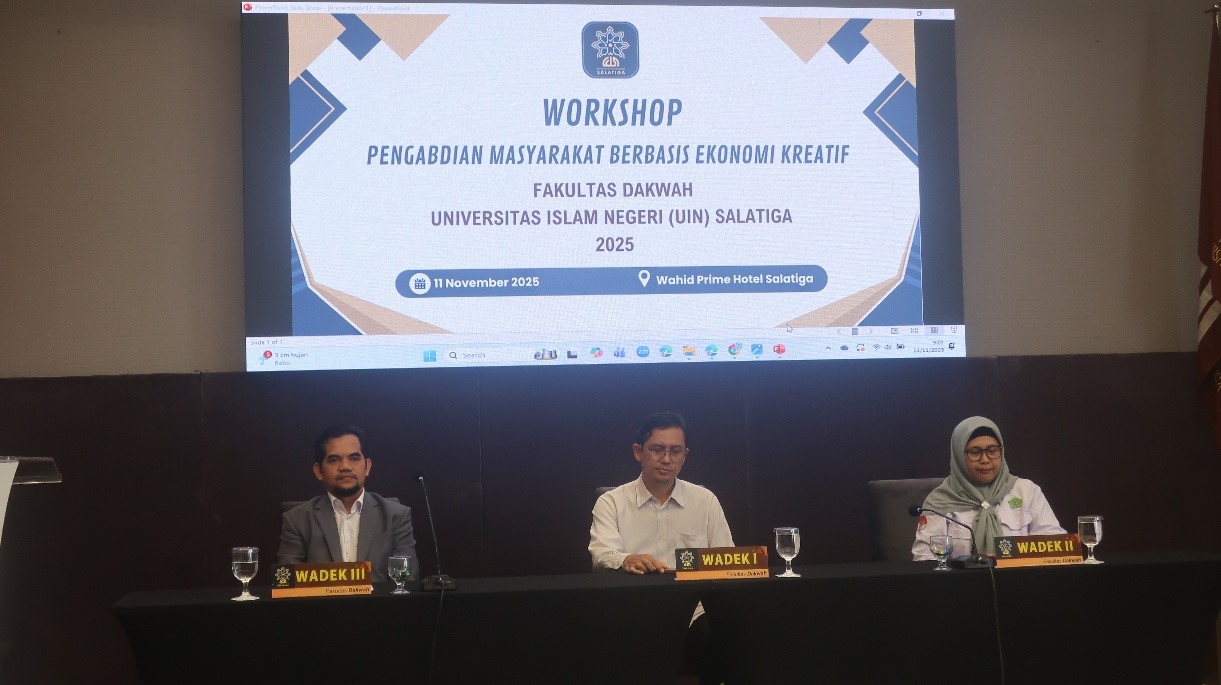 Fakultas Dakwah Universitas Islam Negeri (UIN) Salatiga sukses menggelar kegiatan Pengabdian Masyarakat Berbasis Ekonomi Kreatif bertempat di Hotel Wahid Prime Salatiga (11/11/2025). Kegiatan ini diikuti oleh 70 peserta, dari pelaku UMKM di Salatiga dan sekitarnya