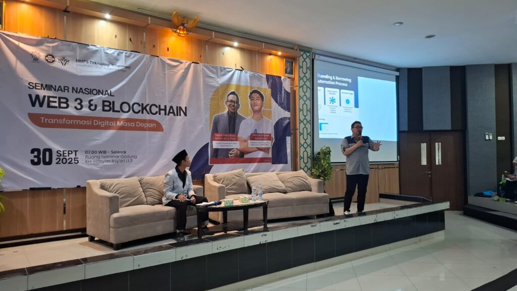 SALATIGA – Himpunan Mahasiswa Program Studi (HMPS) Teknologi Informasi UIN Salatiga sukses menyelenggarakan Seminar Nasional dengan tema “Web3 & Blockchain: Transformasi Digital Masa Depan”. Acara yang bertujuan untuk memperkaya wawasan mahasiswa mengenai teknologi terkini ini digelar di Ruang Seminar Lantai 3 Gedung K.H. Hasyim Asy’ari pada Selasa, 30 September 2025.